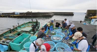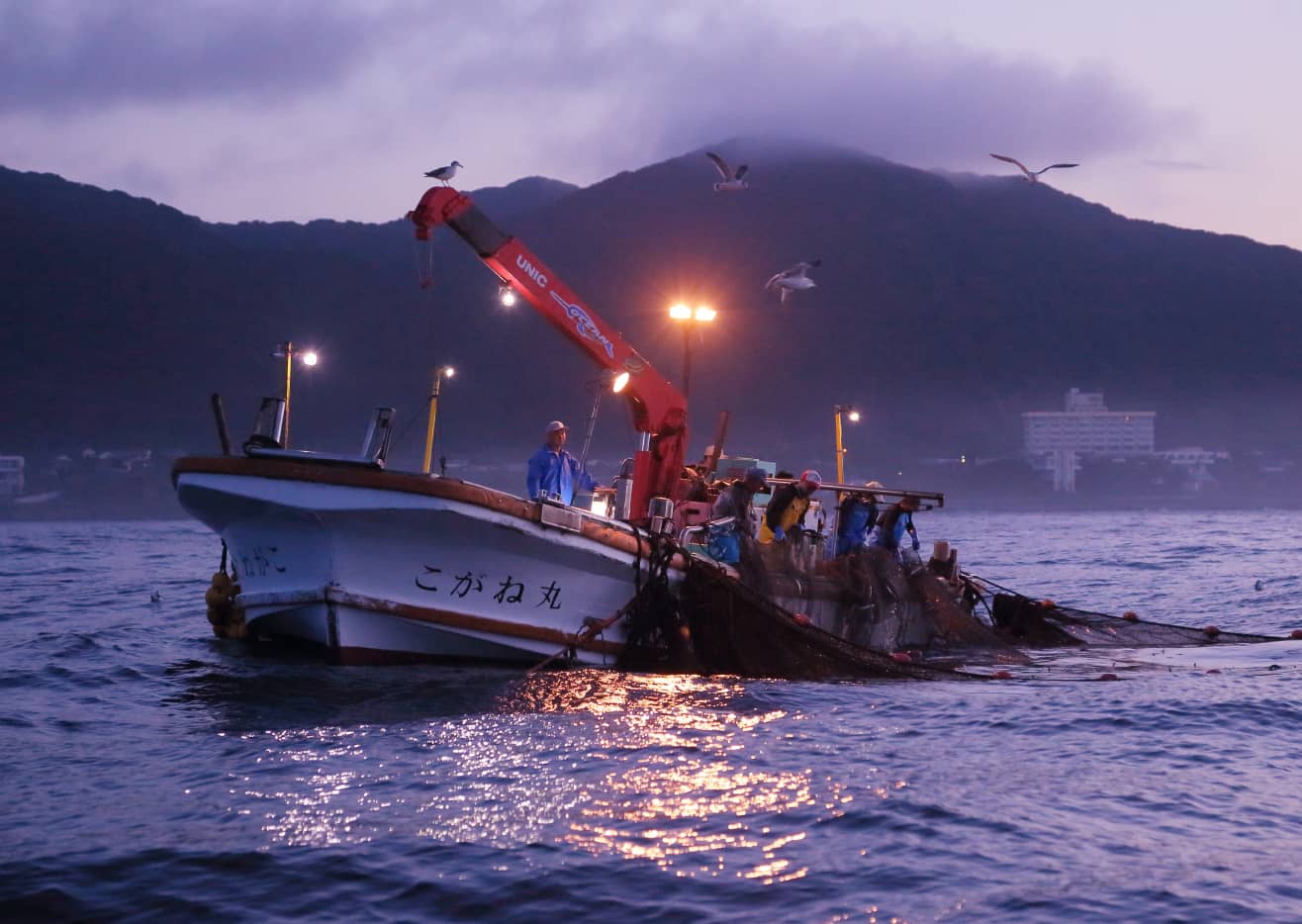 毎朝、漁船を繰り出して、宿の目の前の海で魚を獲っています。
